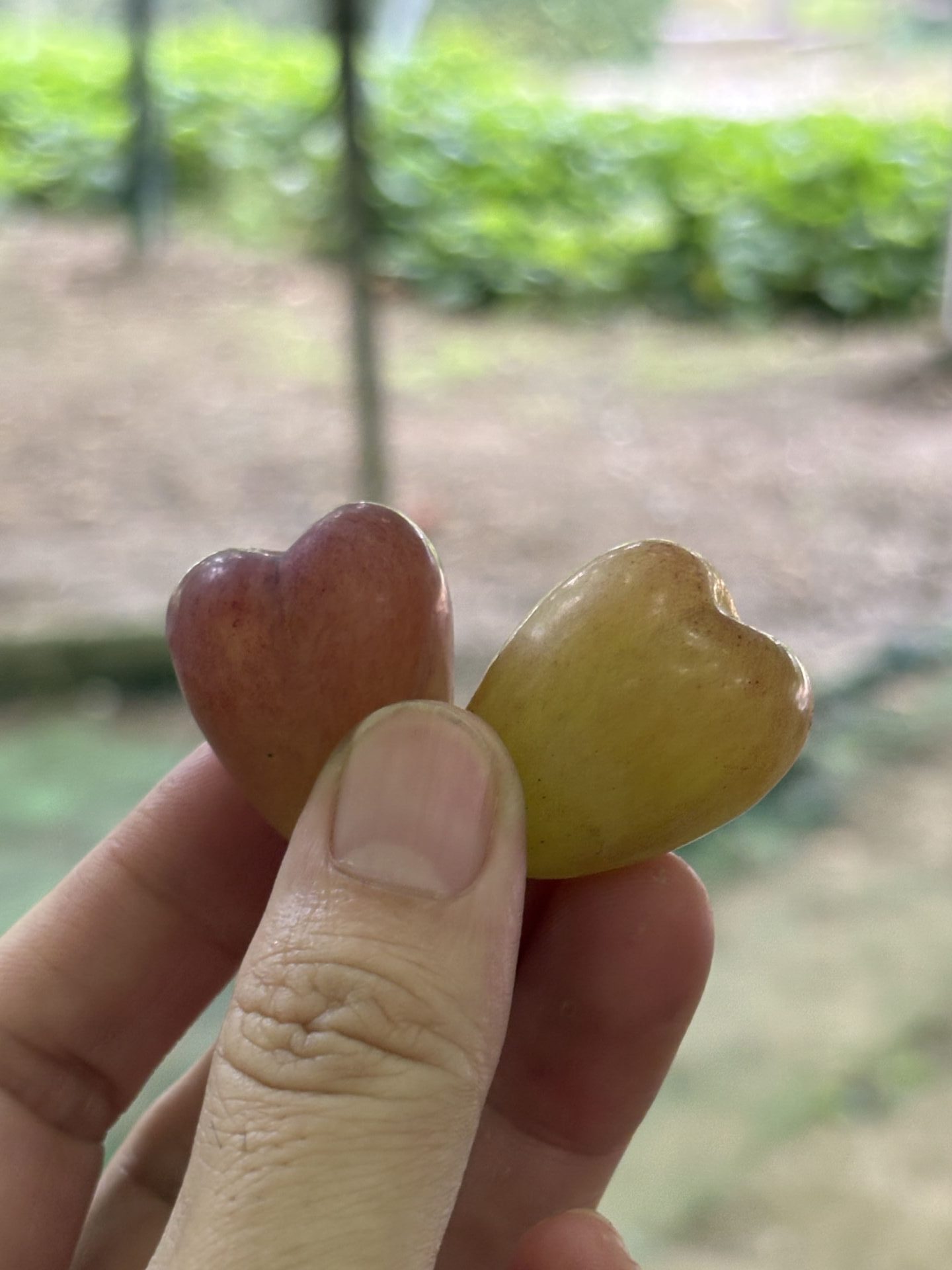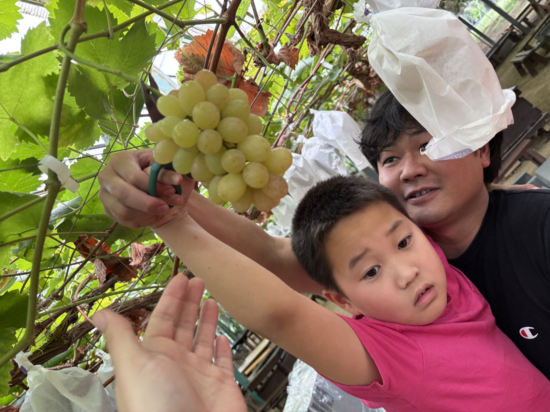 スタッフが見つけたブドウが粒がハートの形になっていたみんな「かわいいね」「これ美味しい」
