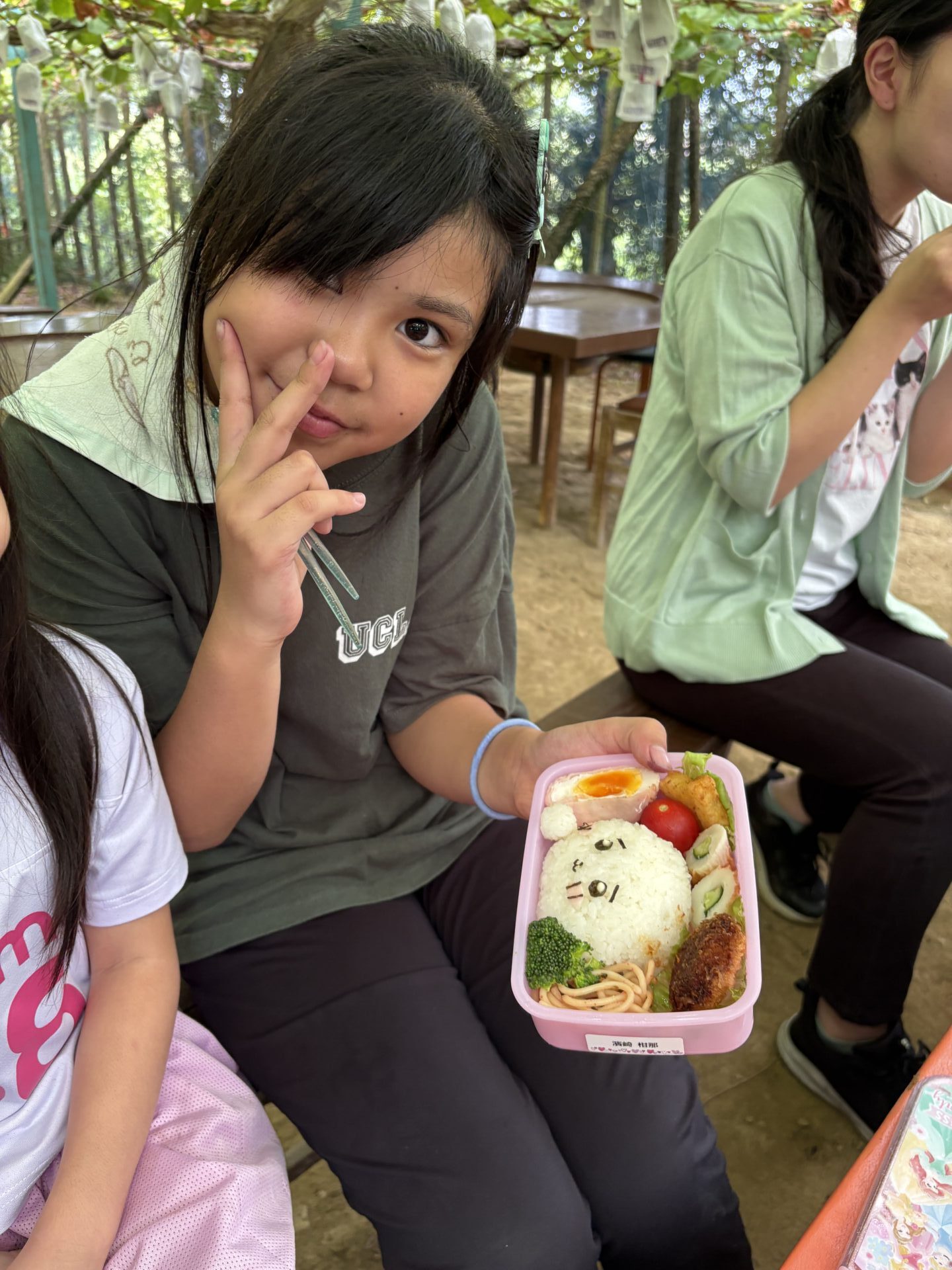 お昼ご飯では、みんな美味しそうなお弁当を広げて