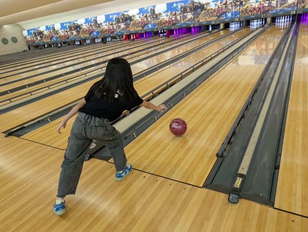ストライクやスペアを取るとスタッフとハイタッチ。