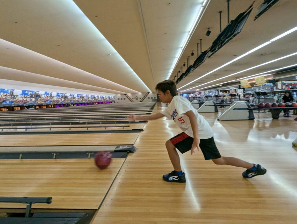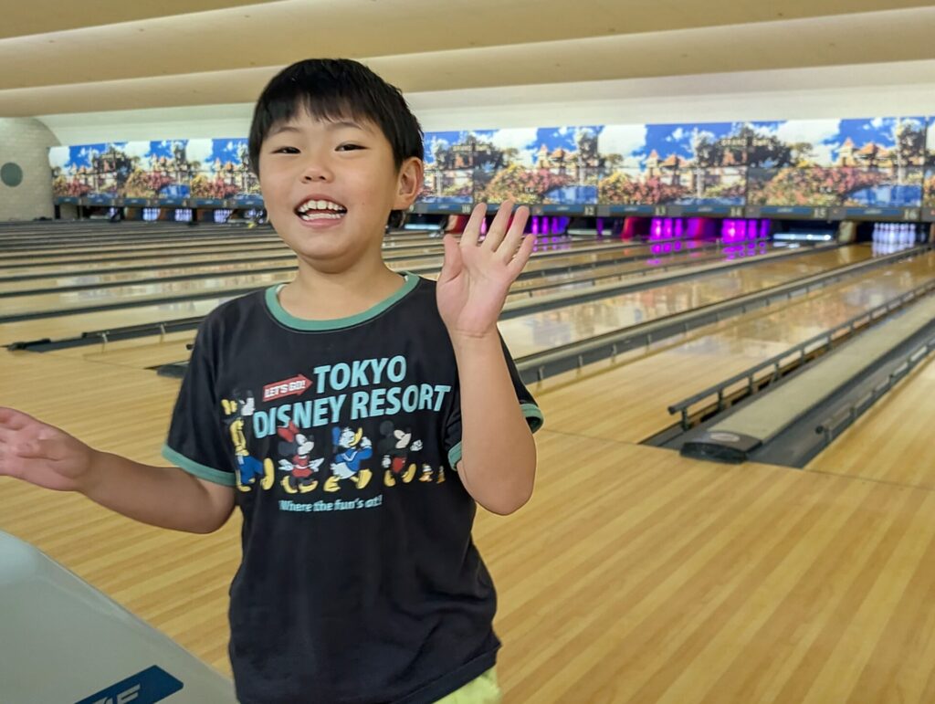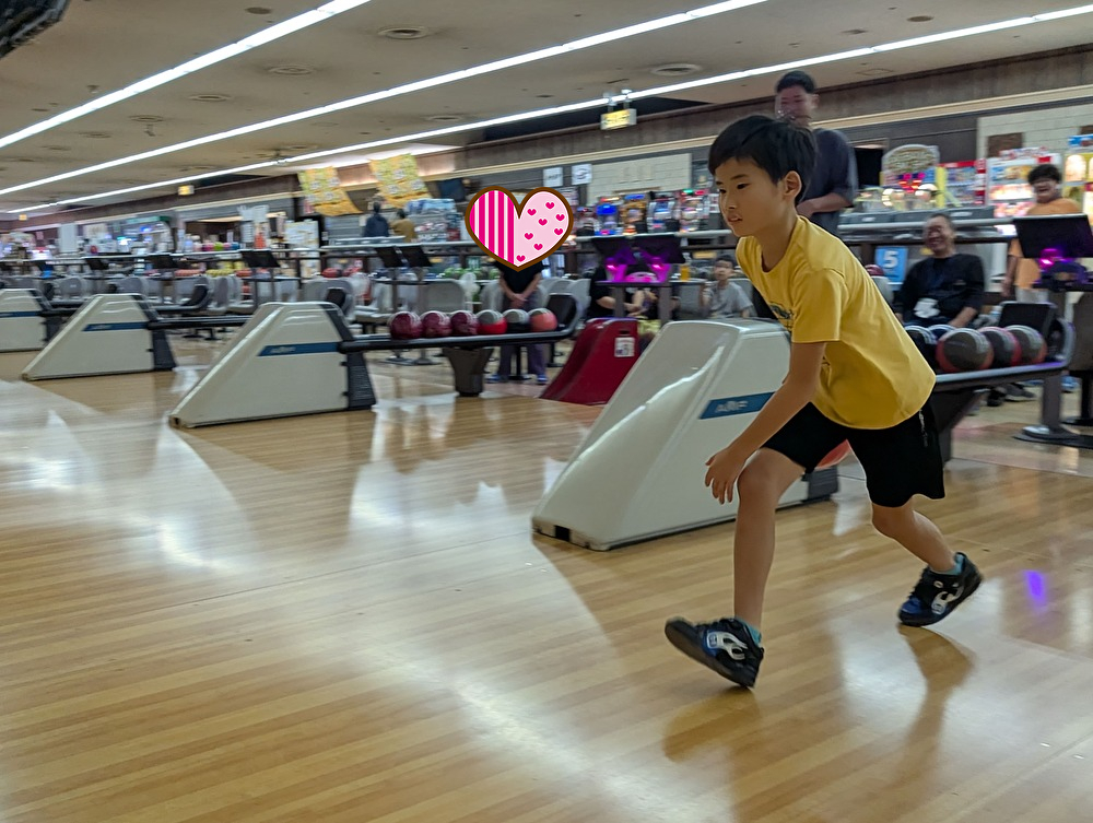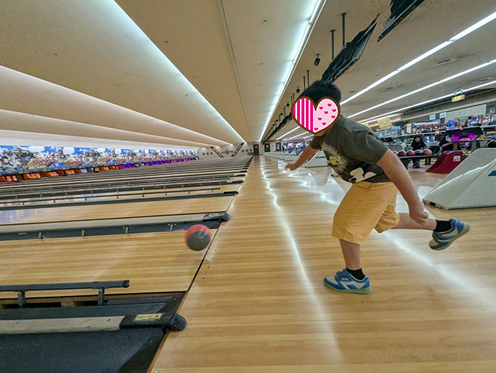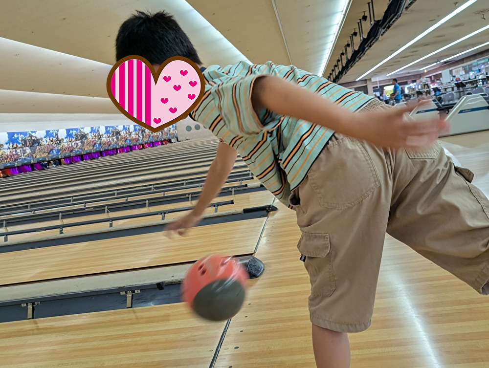 そんな中ボーリングの経験者のY君が投げるとフォームの綺麗さに大人の目が軽く1メートル飛び出しました。